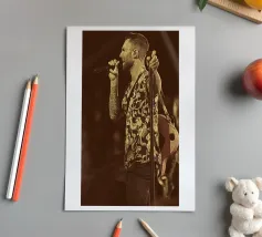 Il pennello dell'acquerello incontra la tinta retrò, catturando Adam a metà del suo percorso sul palcoscenico