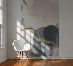 Delicate linee dorate fratturano i colori pastello stratificati come vene di cristallo nella pietra.