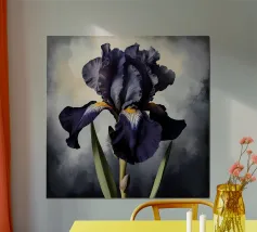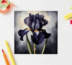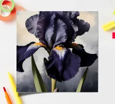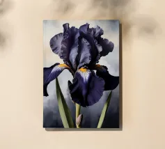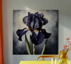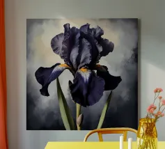 Questa splendida opera d'arte cattura la bellezza di un singolo iris nero in tutto il suo splendore. L'artista ha reso magistralmente gli intricati dettagli del fiore, dalla consistenza vellutata dei petali alle delicate venature delle foglie. I colori ricchi e scuri dell'iris contrastano magnificamente con lo sfondo morbido e tenue, creando un senso di drammaticità ed eleganza. Questo pezzo sarebbe un'aggiunta perfetta a qualsiasi casa o ufficio, aggiungendo un tocco di raffinatezza e stile.