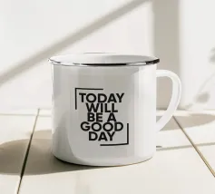 Un design tipografico luminoso ed edificante che presenta la frase "It's a Good Day to Have a Good Day" in un carattere elegante e moderno su strisce arcobaleno in grassetto con effetto ombra. Su uno sfondo neutro, questo disegno irradia positività, felicità ed energia. Perfetto per l'arredamento di case colorate, uffici e regali che diffondono gioia e ottimismo. Creato da showmemars