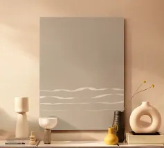 Opera d'arte minimalista giapponese con linee bianche. Opera d'arte minimalista giapponese con graziose pennellate in bianco e sfondo beige. Opera d'arte moderna e astratta di calligrafia giapponese che si adatta bene a vari stili abitativi, come quello giapponese, industriale, moderno, essenziale e naturale. Le diverse pennellate conferiscono all'opera un aspetto minimalista che attira l'attenzione. Se vi piace la semplicità e la forza.