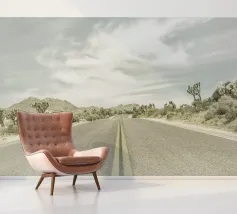 La Park Boulevard è una strada panoramica che attraversa il Joshua Tree National Park con numerosi punti panoramici e sentieri escursionistici. Gli alberi di Joshua caratterizzano il paesaggio brullo. Design dell'immagine in stile vintage.