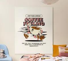 Iniziate la giornata con il vivace design "Coffee Fueling"! Questo motivo retrò mostra una dinamica tazza da caffè in movimento con un caffè fumante, una valigetta e uno sguardo determinato. La combinazione di accenti color pastello e uno stile umoristico rende questo design perfetto per gli amanti del caffè con un senso di avventura.