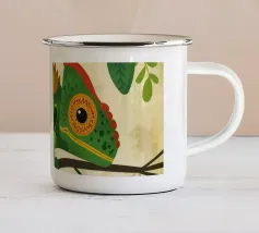 Questo camaleonte si è adattato magistralmente alla modalità relax. Con le zampe allentate sul bordo dell'amaca e uno sguardo di pura soddisfazione, è la prova vivente che a volte il pisolino è uno stile di vita. Questa stampa fa parte della serie "Jungle Hammock Tales" - relax estivo con una strizzatina d'occhio.