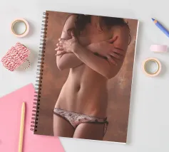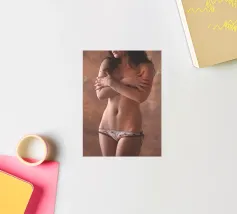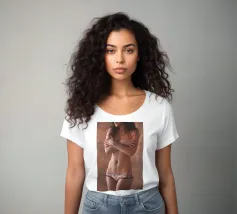 Uno scatto di lingerie glamour semi-nudo di una giovane donna in mutandine piuttosto piccole.