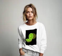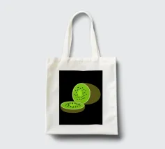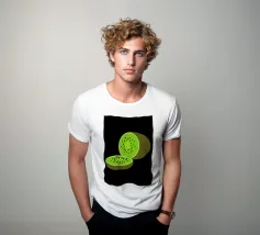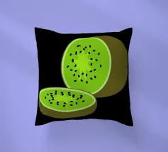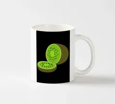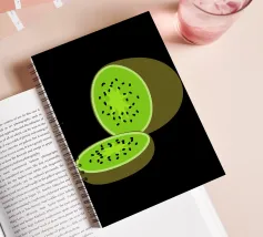 La rappresentazione vivace e stilizzata di un kiwi presenta un interno verde brillante con semi neri. Il disegno enfatizza il contrasto tra il colore verde brillante del kiwi e i suoi semi scuri.