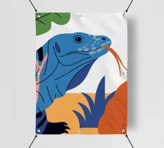 Godetevi una straordinaria illustrazione vettoriale con un drago di Komodo in movimento. Con colori vivaci e un design unico