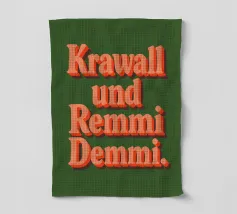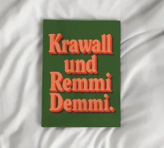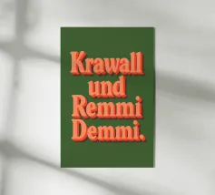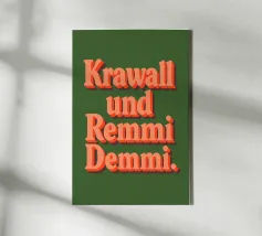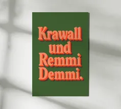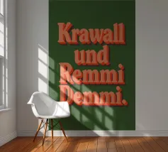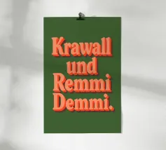 "Riot e Remmi Demmi". - Questo audace poster tipografico porta molta energia alla parete. Con il suo carattere retrò, l'ombra a goccia e i colori vivaci, è una dichiarazione di gioia di vivere, caos e buon umore. Perfetto per salotti, cucine condivise, studi o sale per feste. Se amate il selvaggio, appendete il Remmidemmi proprio nel vostro cuore.