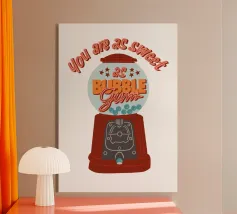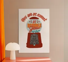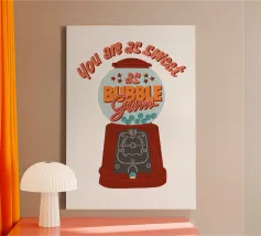 You Are As Sweet As Bubblegum - una giocosa scritta a mano dal design retrò che emana pura dolcezza e nostalgia! Ispirata ai classici distributori automatici di gomme da masticare, combina una tipografia divertente con un'estetica massimalista. Perfetto per la cucina, come citazione motivazionale o come arte per la stanza dei bambini. Che si tratti di un poster per bambini, di articoli di cancelleria o di abbigliamento per bambini, questo disegno porta allegria in ogni stanza. Un dolce pegno d'amore per le coppie, un simpatico regalo di nascita o semplicemente una decorazione allegra per chiunque ami i dolci e le vibrazioni retrò!