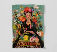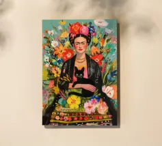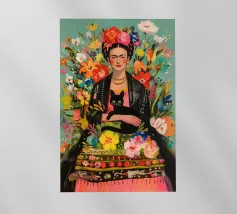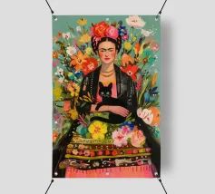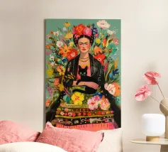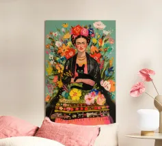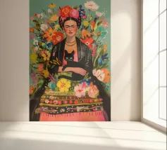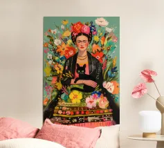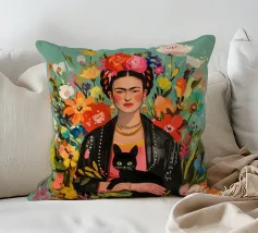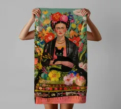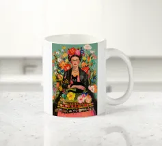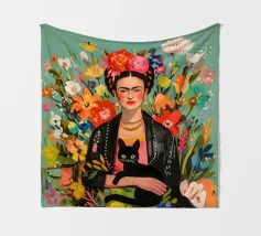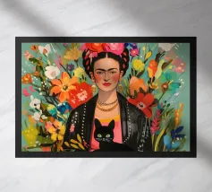Nel suo colorato autoritratto circondato da piante fiorite e dal suo gatto, Frida Kahlo celebra la vita e la femminilità in un mix stimolante di arte messicana e surrealismo.