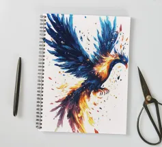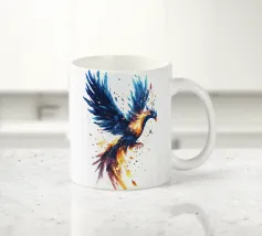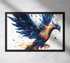 Questa dinamica opera d'arte mostra una maestosa fenice in volo, con ali ampie e colori fiammeggianti. Resa in vibranti tonalità di blu e fuoco, l'immagine trasmette potere, rinascita e trasformazione. Cattura l'essenza della forza mitica e si rivolge a coloro che si sentono ispirati dalla fantasia, dalle leggende e dalla crescita personale. Un potente richiamo per gli spazi moderni, per gli studi creativi o per chiunque creda nella rinascita e nella realizzazione di sé.