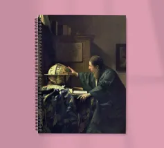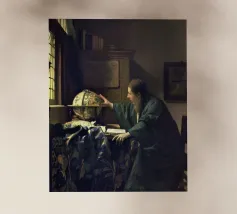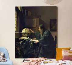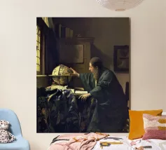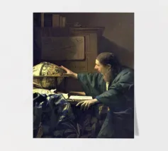 L'astronomo - Johannes Vermeer (1668 circa): Celebre capolavoro della pittura olandese del Secolo d'Oro, quest'opera cattura uno studioso profondamente impegnato nello studio del cosmo. L'attenzione meticolosa di Vermeer per la luce, la struttura e la prospettiva crea una scena intima che fonde la curiosità scientifica con la serenità domestica. Conosciuto per il suo sottile realismo e gli interni luminosi, Vermeer eleva un semplice momento in un simbolo duraturo di conoscenza e contemplazione. Ideale come stampa d'arte o poster per i collezionisti, per gli ammiratori della pittura classica olandese o per chi cerca una parete sofisticata e stimolante.