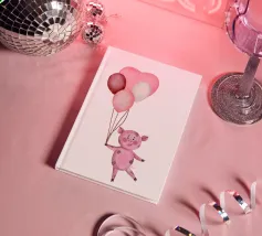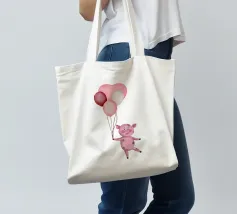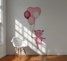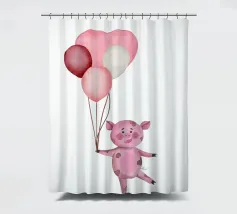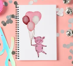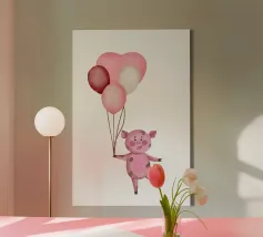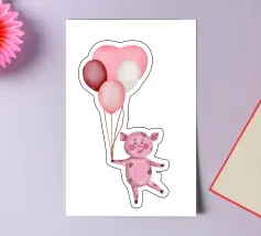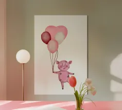 Questa adorabile opera d'arte raffigura un simpatico maiale che tiene in mano palloncini colorati, perfetto per aggiungere un tocco di allegria a qualsiasi oggetto. Ideale per i bambini, questo disegno può essere applicato su tazze, magliette, quaderni, custodie per telefoni, poster e asciugamani, diffondendo allegria e fascino ovunque appaia.