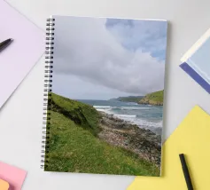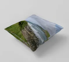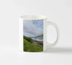 Vista di una costa spazzata dal vento, dove il mare agitato incontra scogliere pietrose e nuvole scure attraversano il cielo. Nonostante il tempo drammatico, l'acqua risplende di un verde chiaro, accennando alla vita rigogliosa che caratterizza la natura dell'Irlanda. Un momento tipico dell'"Isola di Smeraldo": selvaggia, incontaminata e piena di atmosfera.