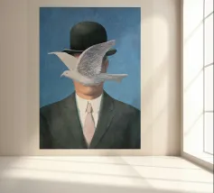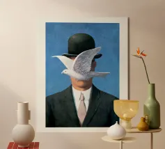 L'Homme au Chapeau Melon è un'opera iconica di René Magritte. Con un uomo senza volto con una bombetta, quest'opera gioca con l'anonimato, il simbolismo e la qualità onirica dell'identità. Un pezzo perfetto per gli amanti del surrealismo e del design audace e stimolante.L'Homme au Chapeau Melon, arte del surrealismo, uomo con bombetta, ritratto misterioso, ispirato a Magritte, arte simbolica, immaginario surrealista, figura senza volto, pittura concettuale, opera d'arte onirica, uomo con cappello, ritratto surreale, surrealismo classico, arte e identità, surrealista europeo, figura enigmatica, arte classica moderna, metafora visiva