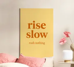 "Rise slow - rush nothing" vi ricorda di crescere al vostro ritmo. Questo poster tipografico rilassante, dai toni caldi della terra su uno sfondo giallo tenue, porta la consapevolezza e la serenità nella vostra casa. Perfetto per la camera da letto, l'ufficio o la sala yoga, per chiunque voglia rallentare, vivere consapevolmente e ascoltare la propria voce interiore.