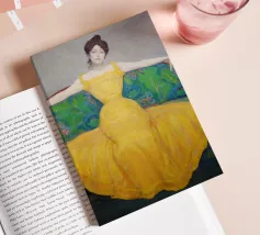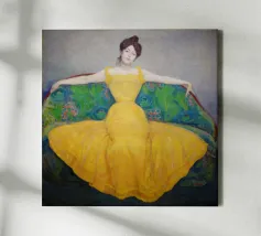 La Dame in Gelb (1907) di Max Kurzweil è un ritratto di grande effetto che riflette la raffinata bellezza dell'Art Nouveau viennese. La donna elegantemente vestita con un radioso abito giallo emana una tranquilla raffinatezza, incorniciata da delicati motivi decorativi e toni tenui. Capolavoro dell'arte austriaca del primo Novecento, questa stampa aggiunge un tocco di stile e fascino senza tempo a qualsiasi interno.Max Kurzweil, Dama in gelb, Secessione viennese, Art Nouveau, pittore austriaco, ritratto del 1907, dipinto con abito giallo, arte viennese, ritratto femminile, Jugendstil, primo modernismo, simbolismo austriaco