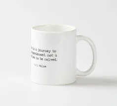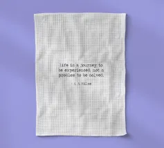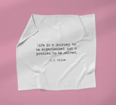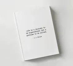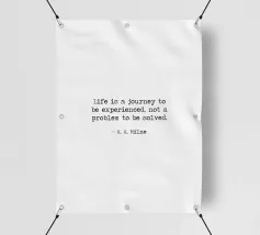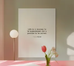 "La vita è un viaggio da vivere, non un problema da risolvere" - celebre Winnie The Pooh di A. A. Milne Citazione minimalista in bianco e nero, macchina da scrivere, word art.
