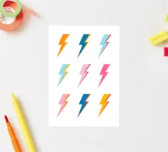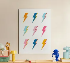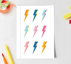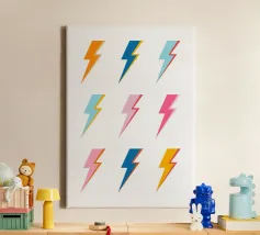 Elettrizzate il vostro spazio con il poster "Pop Art Lightning Bolts". Questo vivace design presenta una griglia di nove fulmini stilizzati, ognuno dei quali è reso in una sorprendente combinazione di colori di ispirazione retrò come l'arancione, il blu, il rosa e il giallo. I contorni decisi e lo stile grafico pulito evocano un'estetica pop art potente ed energica, perfetta per aggiungere una dichiarazione dinamica e di tendenza a qualsiasi interno contemporaneo, stanza della musica o spazio per ragazzi. Le nostre opere d'arte digitale sono realizzate con una risoluzione di 7000x5000 pixel a 300 dpi, per garantire una chiarezza eccezionale e una finitura di alta qualità per il vostro progetto.