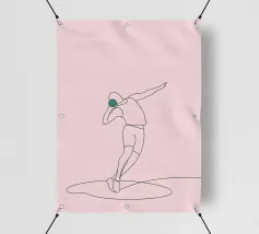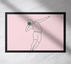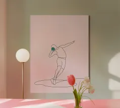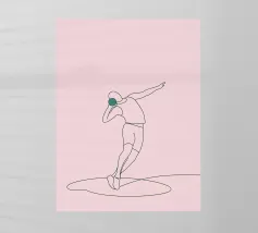 Line art minimalista di un atleta che lancia una palla, catturando potenza, movimento e precisione. Perfetto per gli amanti dello sport e per le decorazioni ispirate all'azione dinamica.