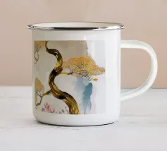 Questo tranquillo paesaggio astratto fonde i toni tenui della terra con texture fluide, offrendo un senso di calma e bellezza senza tempo. I caldi ruggini, i morbidi beige e i profondi blu navy sono abbinati a un audace elemento circolare, che ricorda un corpo celeste, creando un disegno moderno ma sereno. Dettagli sottili, come sottili increspature lineari e deboli sagome di alberi, aggiungono profondità ed equilibrio a questa composizione minimalista.