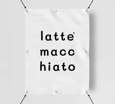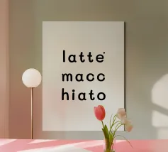 Amore per il latte macchiato. Tipografia in nero e bianco (trasparente). È possibile cambiare il colore dello sfondo. Poster tipografico minimalista.