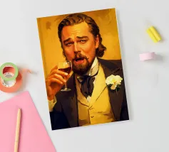Festeggiate con questo esilarante meme di Leonardo DiCaprio, che combina la sua iconica risata da Django Unchained con un bicchiere di vino. Perfetto per gli appassionati di cinema, gli amanti dei meme e tutti coloro che amano le risate! Questo design vintage di tendenza è un must per tutti i fan di DiCaprio.