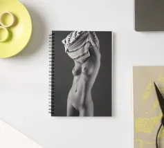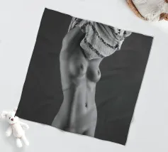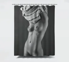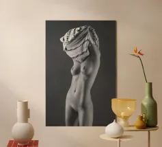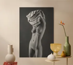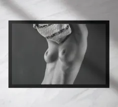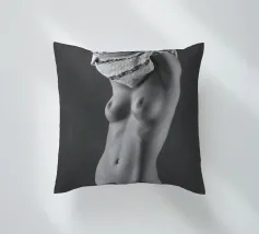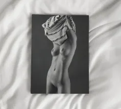 Uno scatto di nudo artistico di una giovane donna che si infila un maglione in testa