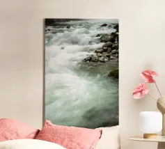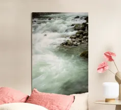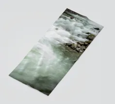 Acque impetuose si fanno strada attraverso la pietra antica, precipitando su pareti rocciose con una forza inflessibile. Le **Dolomiti** si ergono senza tempo, le loro cime frastagliate abbracciano la cascata che brilla alla luce dorata del sole. La nebbia sale, catturando la luce come diamanti sparsi, mentre il verde intenso della natura incontaminata incornicia la scena in perfetta armonia. Un momento di cruda bellezza, in cui movimento e quiete coesistono, a testimonianza dell'eterna maestria della natura.