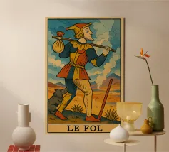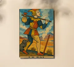 La carta dei tarocchi "LE FOL", ispirata al classico archetipo del Matto, è reimmaginata in un paesaggio vibrante e onirico. Realizzata nello stile di Moebius, questa carta cattura l'essenza dell'avventura, della spontaneità e dei nuovi inizi. La figura stravagante, vestita con abiti patchwork, cammina con fiducia verso l'ignoto, simboleggiando il potenziale e la libertà. Ideale per lettori di tarocchi, collezionisti e appassionati di arte surreale e visionaria. Scoprite "Il Matto" come mai prima d'ora, dove il misticismo incontra l'illustrazione fantasiosa. Perfetto per i tarocchi, la carta del Matto, l'arte di Moebius, il viaggio spirituale.