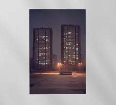 Nel cuore di Pyongyang, le torri gemelle si ergono illuminando dolcemente la città addormentata. Una vista accattivante sulla vita notturna della capitale.