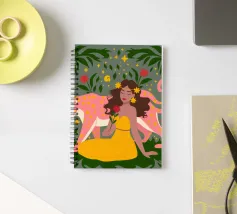 Quest'opera d'arte mostra due persone sedute schiena contro schiena, circondate dal fogliame lussureggiante della giungla e da un leopardo rosa. La scena è mistica e incantevole, con un senso di profonda connessione con la natura.