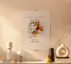Audace e radioso come lo spirito del Leone, questo poster zodiacale combina espressivi tratti di inchiostro con schizzi di colore luminosi e stratificati per creare un moderno ritratto celeste. Caratterizzato dal simbolo del Leone in un'interpretazione astratta ma feroce, è ideale per gli amanti dell'astrologia, per i fan del segno del fuoco o per chiunque sia nato sotto questo segno passionale. Un'aggiunta straordinaria a qualsiasi parete.