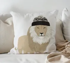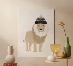Questa illustrazione minimalista mostra un simpatico leone con un cappello di lana che delizia con il suo affascinante disegno in stile cartoon. Lo sfondo bianco enfatizza la grafica disegnata a mano e conferisce all'arte moderna un'estetica elegante. Perfetto per gli amanti dei gatti, questo simpatico animale dona un tocco di atmosfera africana a qualsiasi ambiente.