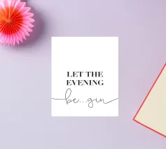 Questo design moderno con l'affascinante slogan "Let the Evening Be...Gin" è la scelta perfetta per gli amanti del gin e per chiunque apprezzi la tipografia elegante. Con un carattere chiaro e minimalista, dona eleganza e umorismo a qualsiasi ambiente. Perfetto per opere d'arte da parete, tazze, magliette, cuscini e altro ancora, questo motivo è un regalo meraviglioso per gli amanti dei cocktail, gli appassionati di bar o gli amici che amano le serate con un gin tonic. Ideale per compleanni, feste di inaugurazione della casa o come dichiarazione di stile per la vostra casa.