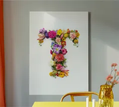 Il disegno può essere personalizzato: potete ordinarlo così com'è (basta non modificare nulla nella pagina di personalizzazione e aggiungerlo direttamente al carrello). Oppure potete aggiungere un nome completo in caratteri neri semplici sotto la lettera del fiore, ad esempio.