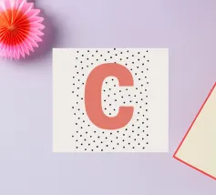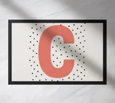 Questo moderno disegno tipografico mostra la lettera "C" in rosso su un elegante motivo a punti. Ideale come murale per camere di bambini, uffici o spazi abitativi creativi. Perfetto per chi ama le forme chiare e il design minimalista. Un vero colpo d'occhio anche come regalo personalizzato con le iniziali. Per poster, magliette, cuscini o altro ancora: un'attrazione versatile per la vostra casa!