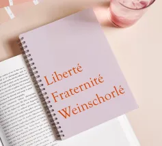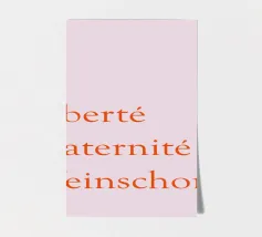 Questo poster deliziosamente ironico trasforma l'iconico motto francese in una dichiarazione umoristica per intenditori. Su uno sfondo rosa tenue, le parole brillano in rosso vivo: a partire dalle classiche "Liberté" e "Fraternité", la triade si conclude in modo ammiccante con "Weinschorlé". Il carattere serif rosso conferisce all'insieme una gravitazione elegante, quasi da statista, che viene però meravigliosamente spezzata dall'affascinante battuta finale.