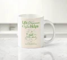 Un affascinante design di ispirazione retrò con la frase "Life Happens, Coffee Helps", che unisce la confortante semplicità di uno stile vintage a un messaggio moderno. I toni caldi e terrosi e la tipografia classica evocano un senso di nostalgia, mentre il testo scherzoso ricorda con leggerezza che il caffè è il compagno perfetto per gli alti e bassi della vita. Perfetto per gli amanti del caffè, le cucine di casa o gli uffici che hanno bisogno di una spinta motivazionale. Un'aggiunta accogliente ed elegante a poster, tazze e altro ancora!