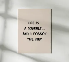 Questo poster con citazione riporta le parole "La vita è un viaggio... e io dimentico la mappa". Un design leggero che dona umorismo e calore a qualsiasi ambiente. Perfetto per corridoi, uffici, soggiorni o spazi creativi. Con il suo stile semplice e moderno, quest'opera d'arte si adatta a molte tendenze d'interni ed è un regalo gradito per chiunque ami i viaggi, l'umorismo o le citazioni motivazionali con un tocco di fantasia.