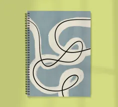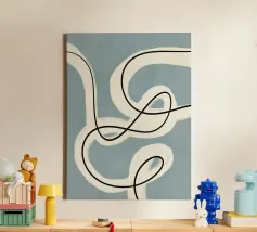Linee astratte si intrecciano su uno sfondo blu tenue, creando un senso di continuo movimento e complessità. I tratti contrastanti in bianco e nero sembrano essere inanellati senza sforzo, conferendo alla composizione un flusso dinamico ed elegante.
