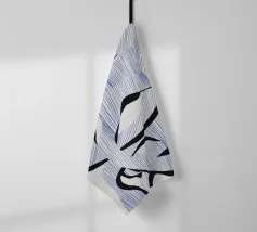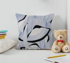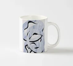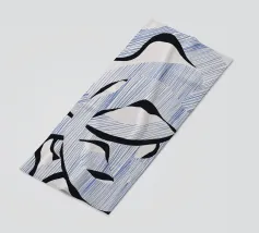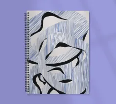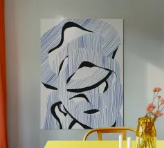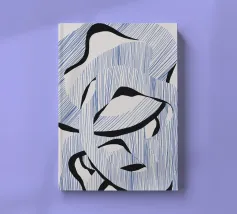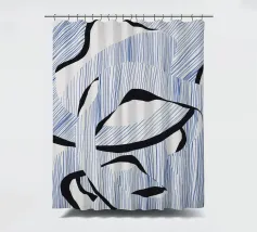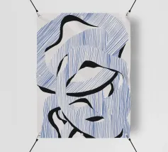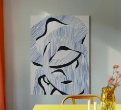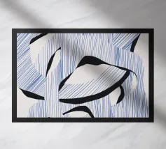 Le forme astratte di questa immagine sono create utilizzando linee blu e audaci forme nere, che si intrecciano in un modello ritmico. La composizione dà un senso di movimento e fluidità.