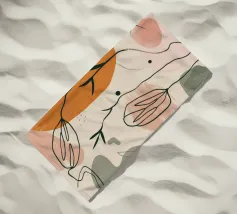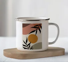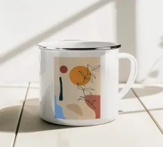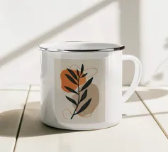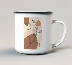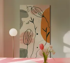 Un'opera d'arte delicata e minimalista che presenta i contorni di fiori e foglie nei toni del nero e dell'arancione. L'opera incarna un approccio moderno e scandinavo all'arte botanica, concentrandosi sulla forma e sulla semplicità.