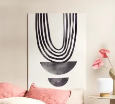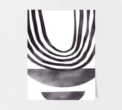 Questo elegante design colpisce per l'armoniosa composizione di linee curve e semicerchi geometrici nelle profonde tonalità del nero e del grigio. L'estetica minimalista e le linee moderne conferiscono al motivo un'eleganza senza tempo. Perfetta per murales, cuscini, tazze o cover per cellulari, quest'opera d'arte si integra perfettamente negli spazi abitativi moderni e scandinavi. Un regalo ideale per gli amanti dell'arte astratta e del design contemporaneo.