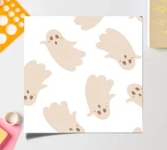 I fantasmini giocosi nei toni morbidi del beige fluttuano creando un motivo stravagante e leggero. I loro tratti semplici e i contorni arrotondati aggiungono un tocco di fascino e divertimento.