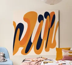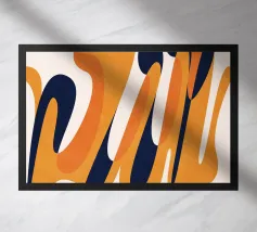arancione e blu scuro - opera d'arte astratta Portate il calore vibrante e la raffinatezza moderna nel vostro spazio con questa stampa d'arte dal design astratto arancione. Caratterizzato da forme audaci e da un'estetica contemporanea, questo pezzo fonde il minimalismo geometrico con un colore ricco ed espressivo. Perfetta per aggiungere un tocco di energia al salotto, all'ufficio o alla parete di una galleria d'arte.