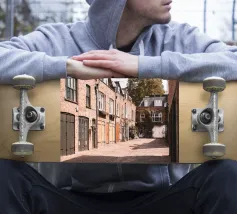 In un tranquillo vicolo cieco di Notting Hill, le facciate in mattoni dell'architettura inglese, nella morbida luce autunnale, ricordano l'elegante e nostalgica autenticità di una macchina fotografica.