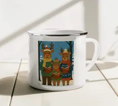 Due renne dei cartoni animati stanno pattinando su un laghetto ghiacciato e una mette in guardia l'altra da un buco nel ghiaccio. Le renne si scambiano dialoghi umoristici, aggiungendo un tono giocoso alla scena.