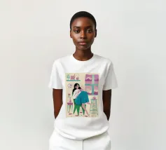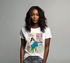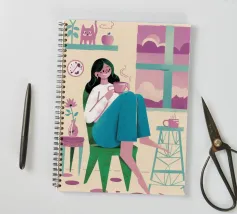 Due donne si trovano insieme in un'accogliente stanza illuminata dalla luce del mattino proveniente da una finestra, una delle quali tiene in braccio un gatto, e condividono un momento tranquillo e intimo di sorellanza o amicizia.