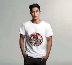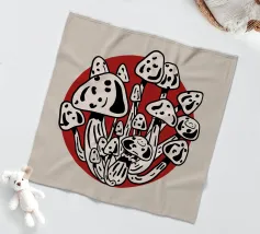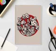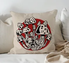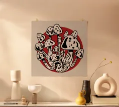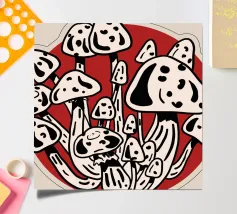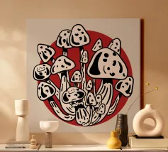 I funghi della Luna rossa in bianco e nero catturano l'energia vibrante della luce lunare che illumina i funghi bianchi e neri, creando un contrasto sorprendente. Ottima scelta per la stagione autunno-inverno.